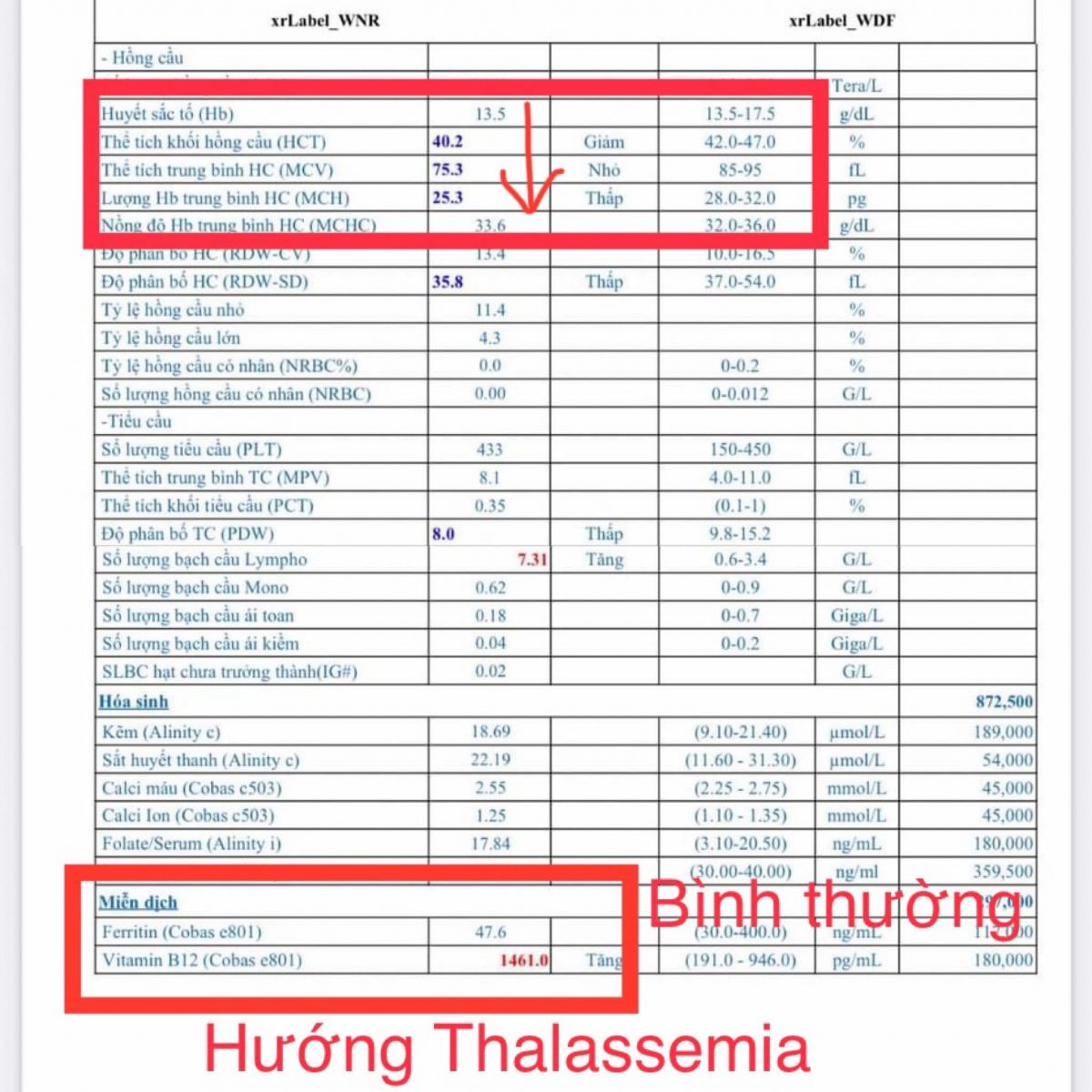 • Cảnh báo: Nguy cơ cao là Thalassemia.