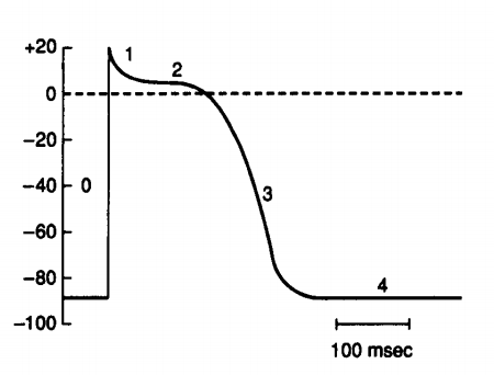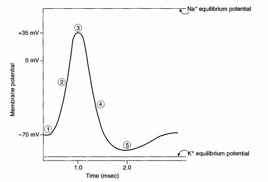 - Tại điểm nào trên đường điện thế hoạt động, K+ gần với cân bằng điện hóa nhất?