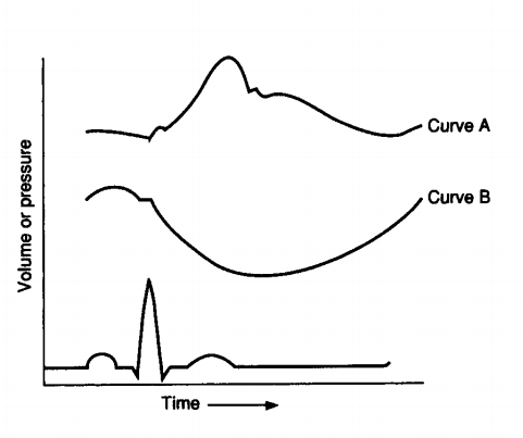 Questions 1 and 2 After extensive testing, a 60-year-old man is found to have a pheochromocytoma that secretes mainly epinephrine. 1. Which of the following signs would be expected in this patient? (A) Decreased heart rate (B) Decreased arterial blood pressure (C) Decreased excretion rate of 3-methoxy- 4-hydroxymandelic acid (VMA) (D) Cold, clammy skin 2. Symptomatic treatment would be best achieved in this man with (A) phentolamine (B) isoproterenol (C) a combination of phentolamine and isoproterenol (D) a combination of phentolamine and propranolol (E) a combination of isoproterenol and phenylephrine 3. The principle of positive feedback is illustrated by the effect of (A) PO2 on breathing rate (B) glucose on insulin secretion (C) estrogen on follicle-stimulating hormone (FSH) and luteinizing hormone (LH) secretion in midcycle (D) blood [Ca2+] on parathyroid hormone (PTH) secretion (E) decreased blood pressure on sympathetic outflow to the heart and blood vessels 4. In the graph at upper right, the response shown by the dotted line illustrates the effect of (A) administration of digitalis (B) administration of a negative inotropic agent (C) increased blood volume (D) decreased blood volume (E) decreased total peripheral resistance (TPR) Questions 5 and 6 5. On the accompanying graph, the shift from curve A to curve B could be caused by (A) fetal hemoglobin (HbF) (B) carbon monoxide (CO) poisoning (C) decreased pH (D) increased temperature (E) increased 2,3-diphosphoglycerate (DPG) 6. The shift from curve A to curve B is associated with (A) decreased P50 (B) decreased affinity of hemoglobin for O2 (C) decreased O2-carrying capacity of hemoglobin (D) increased ability to unload O2 in the tissues 7. A negative free-water clearance (CH2O) would occur in a person (A) who drinks 2 L of water in 30 minutes (B) after overnight water restriction (C) who is receiving lithium for the treatment of depression and has polyuria that is unresponsive to antidiuretic hormone (ADH) administration 265 Right atrial pressure (mm Hg) or end-diastolic volume (L) Cardiac output or venous return (L/min) Venous return Cardiac output A B PO2 (mm Hg) Hemoglobin saturation (%) 100 50 25 50 75 100 98761_Ch08_Chapter 08 5/7/10 6:30 PM Page 265 266 Board Review Series: Physiology (D) with a urine flow rate of 5 mL/min, a urine osmolarity of 295 mOsm/L, and a serum osmolarity of 295 mOsm/L (E) with a urine osmolarity of 90 mOsm/L and a serum osmolarity of 310 mOsm/L after a severe head injury 8. CO2 generated in the tissues is carried in venous blood primarily as (A) CO2 in the plasma (B) H2CO3 in the plasma (C) HCO3 − in the plasma (D) CO2 in the red blood cells (RBCs) (E) carboxyhemoglobin in the RBCs 9. In a 35-day menstrual cycle, ovulation occurs on day (A) 12 (B) 14 (C) 17 (D) 21 (E) 28 10. Which of the following hormones stimulates the conversion of testosterone to 17β- estradiol in ovarian granulosa cells? (A) Adrenocorticotropic hormone (ACTH) (B) Estradiol (C) Follicle-stimulating hormone (FSH) (D) Gonadotropin-releasing hormone (GnRH) (E) Human chorionic gonadotropin (HCG) (F) Prolactin (G) Testosterone 11. Which gastrointestinal secretion is hypotonic, has a high [HCO3 −], and has its production inhibited by vagotomy? (A) Saliva (B) Gastric secretion (C) Pancreatic secretion (D) Bile Questions 12 and 13 A 53-year-old man with multiple myeloma is hospitalized after 2 days of polyuria, polydipsia, and increasing confusion. Laboratory tests show an elevated serum [Ca2+] of 15 mg/dL, and treatment is initiated to decrease it. The patient’s serum osmolarity is 310 mOsm/L. 12. The most likely reason for polyuria in this man is (A) increased circulating levels of antidiuretic hormone (ADH) (B) increased circulating levels of aldosterone (C) inhibition of the action of ADH on the renal tubule (D) stimulation of the action of ADH on the renal tubule (E) psychogenic water drinking 13. The treatment drug is administered in error and produces a further increase in the patient’s serum [Ca2+]. That drug is (A) a thiazide diuretic (B) a loop diuretic (C) calcitonin (D) mithramycin (E) etidronate disodium 14. Which of the following substances acts on its target cells via an inositol 1,4,5- triphosphate (IP3)–Ca2+ mechanism? (A) Somatomedins acting on chondrocytes (B) Oxytocin acting on myoepithelial cells of the breast (C) Antidiuretic hormone (ADH) acting on the renal collecting duct (D) Adrenocorticotropic hormone (ACTH) acting on the adrenal cortex (E) Thyroid hormone acting on skeletal muscle 15. A key difference in the mechanism of excitation–contraction coupling between the muscle of the pharynx and the muscle of the wall of the small intestine is that (A) slow waves are present in the pharynx, but not in the small intestine (B) adenosine triphosphate (ATP) is used for contraction in the pharynx, but not in the small intestine (C) intracellular [Ca2+] is increased after excitation in the pharynx, but not in the small intestine (D) action potentials depolarize the muscle of the small intestine, but not of the pharynx (E) Ca2+ binds to troponin C in the pharynx, but not in the small intestine, to initiate contraction 16. A 40-year-old woman has an arterial pH of 7.25, an arterial PCO2 of 30 mm Hg, and serum [K+] of 2.8 mEq/L. Her blood pressure is 100/80 mm Hg when supine and 80/50 mm Hg when standing. What is the cause of her abnormal blood values? 98761_Ch08_Chapter 08 5/7/10 6:30 PM Page 266 Chapter 8 Comprehensive Examination 267 (A) Vomiting (B) Diarrhea (C) Treatment with a loop diuretic (D) Treatment with a thiazide diuretic 17. Secretion of HCl by gastric parietal cells is needed for (A) activation of pancreatic lipases (B) activation of salivary lipases (C) activation of intrinsic factor (D) activation of pepsinogen to pepsin (E) the formation of micelles 18. Which of the following would cause an increase in glomerular filtration rate (GFR)? (A) Constriction of the afferent arteriole (B) Constrict