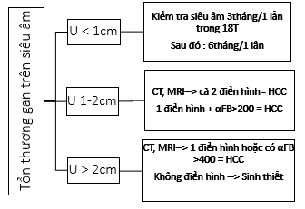 Tiến trình: Bệnh sử (Viêm gan B, C, xơ gan, nghiện rượu..) àĐánh giá toàn trạng: gan, cổ trướng. vàng da, xuất huyết. à XN: AST, ALT, γGT, Albumin, đông máu, Bilirubin, HbsAg, anti-HCV ( định lượng HBV-DNA, và HCV-DNA) à SA, CT à Chụp XQ, CT phổi đánh giá di căn