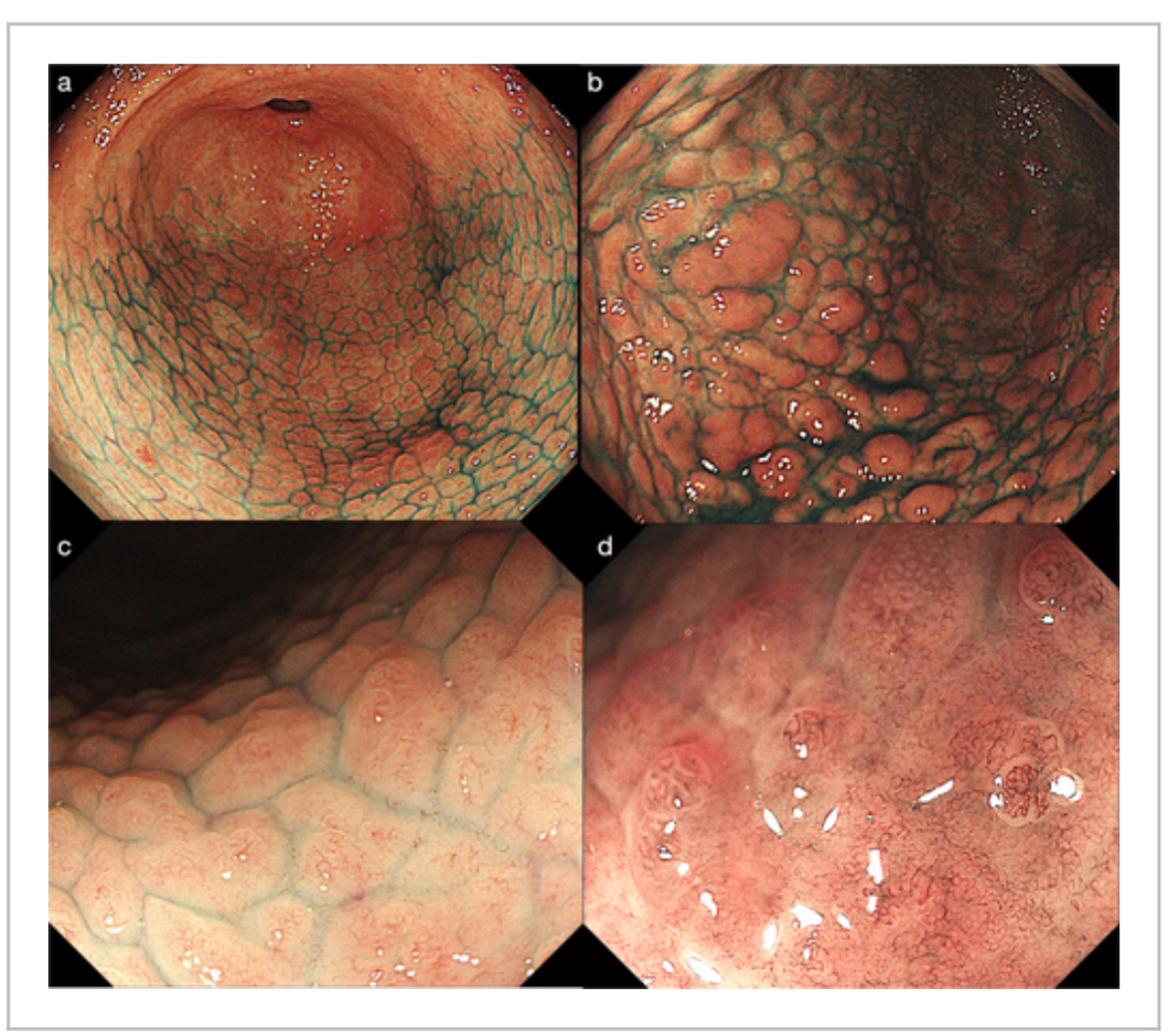 First, the “salmon roe-like” antral morphology—enhanced by chromoendoscopy—provides a distinctive visual indicator for targeted biopsy that may improve diagnostic yield.